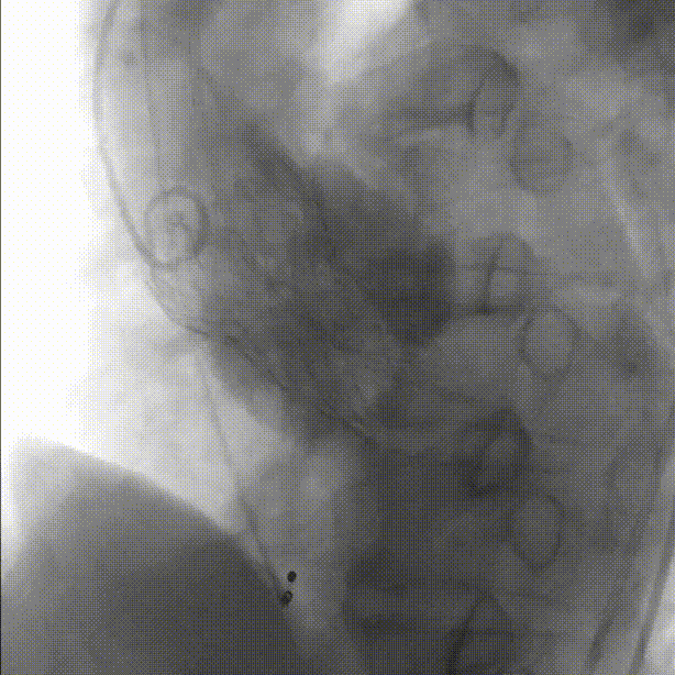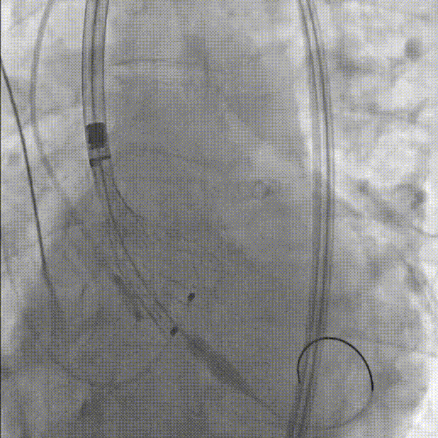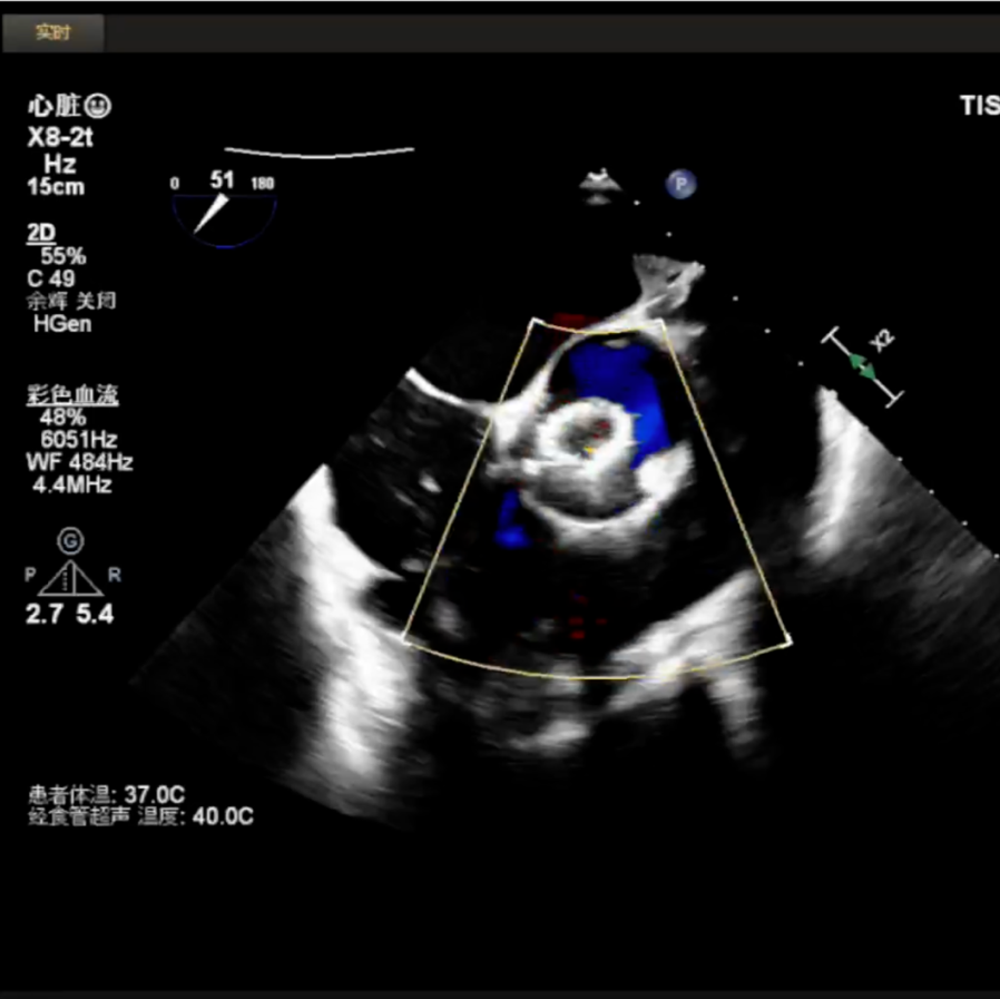 释放中期,快速起搏下释放到80%切换视图,并借助食管心超评估深度和反流情况: