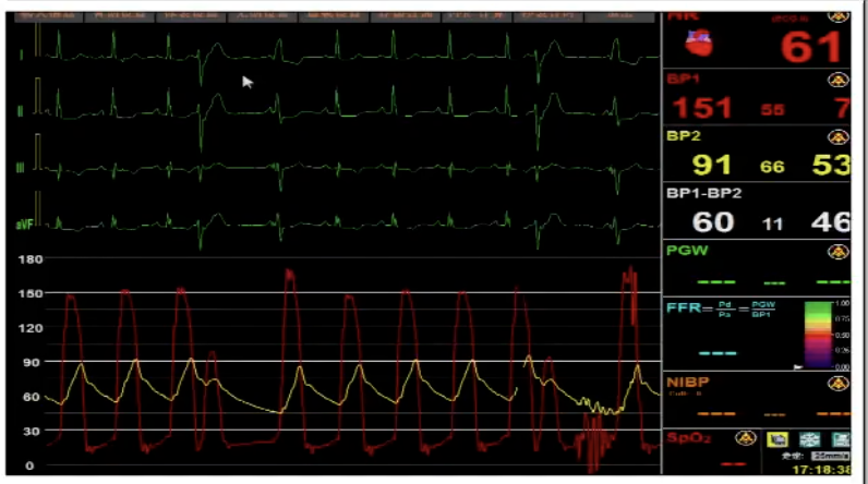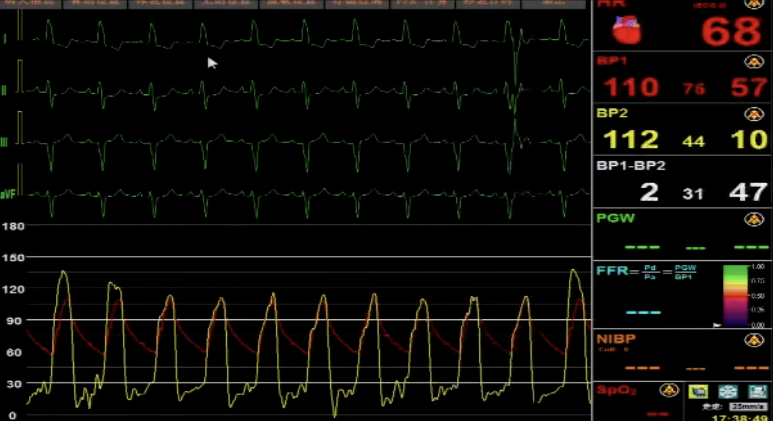 导管测压,压力阶差60mmHg: