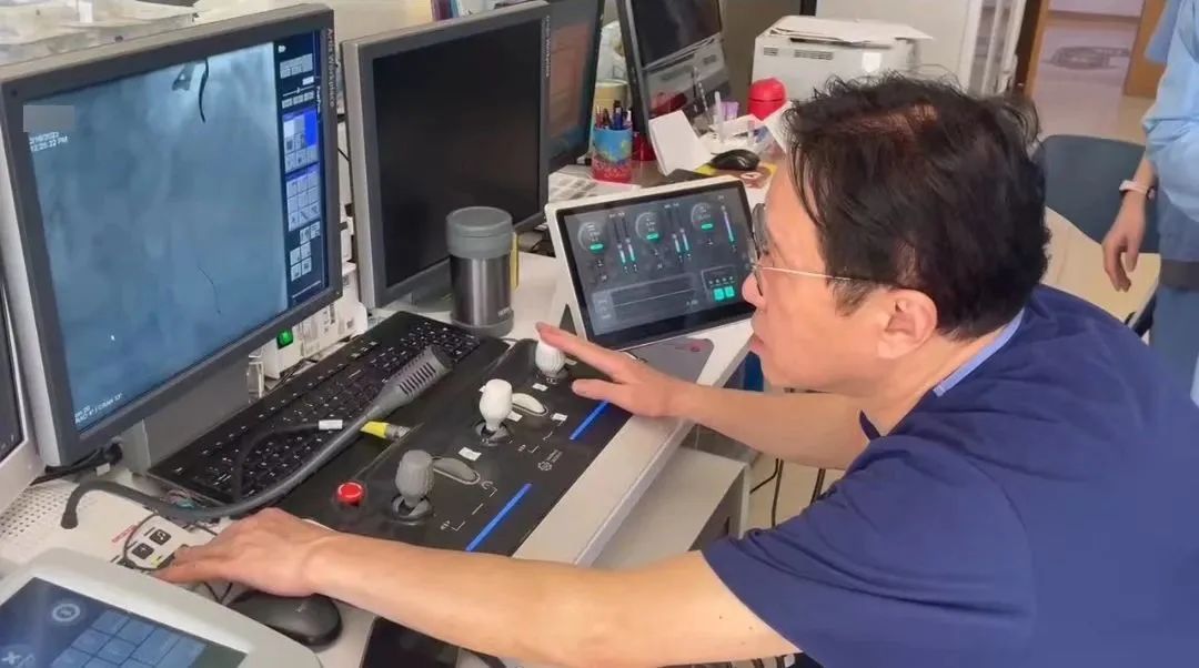 2023年2月16日,上海市第十人民医院心内科徐亚伟教授团队应用唯迈医疗ETcath 200介入手术机器人成功完成一例冠状动脉严重狭窄病变支架植入手术及血管内超声检查,本次手术由徐亚伟教授隔室操作冠脉介入机器人完成。