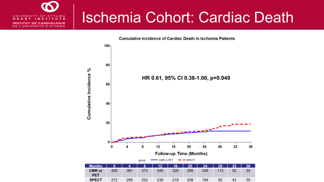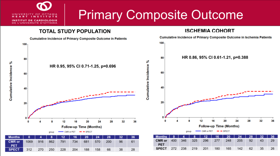 无论是在总研究群体还是随机队列中,ADV组较SPECT组在主要临床终点方面无显著性差异。接受ADV评估的患者群体中血运重建的发生率较高;但在心肌缺血队列研究中,ADV组较SPECT组心源性死亡发生率更低,该组接受血运重建后的患者预后更佳。