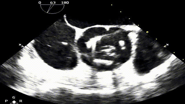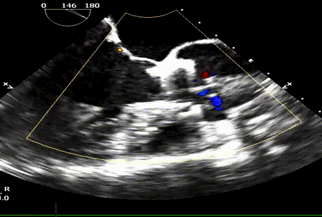 台上复查食道超声,瓣架圆形展开,启闭良好: