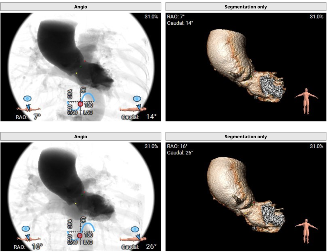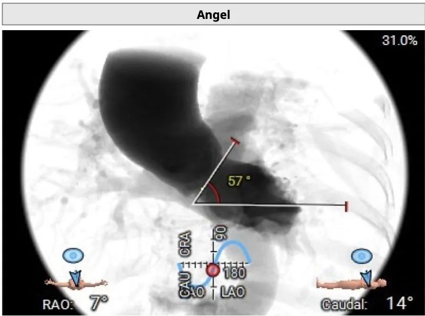 术中建议造影角度RAO 7°,CAU 14°(其它参考角度如下图):