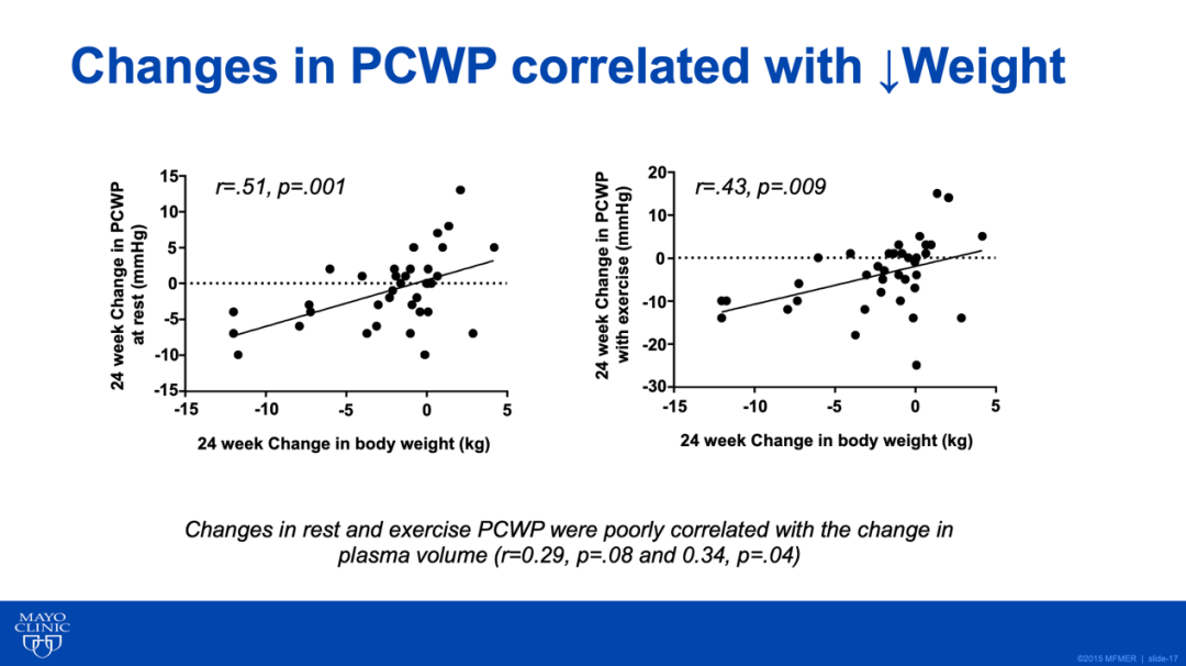 图6.治疗24周后 PCWP变化幅度与体重变化幅度相关性分析
