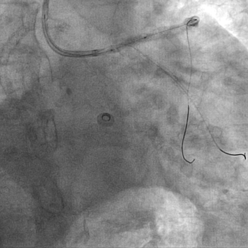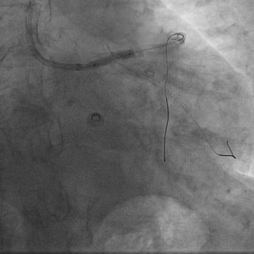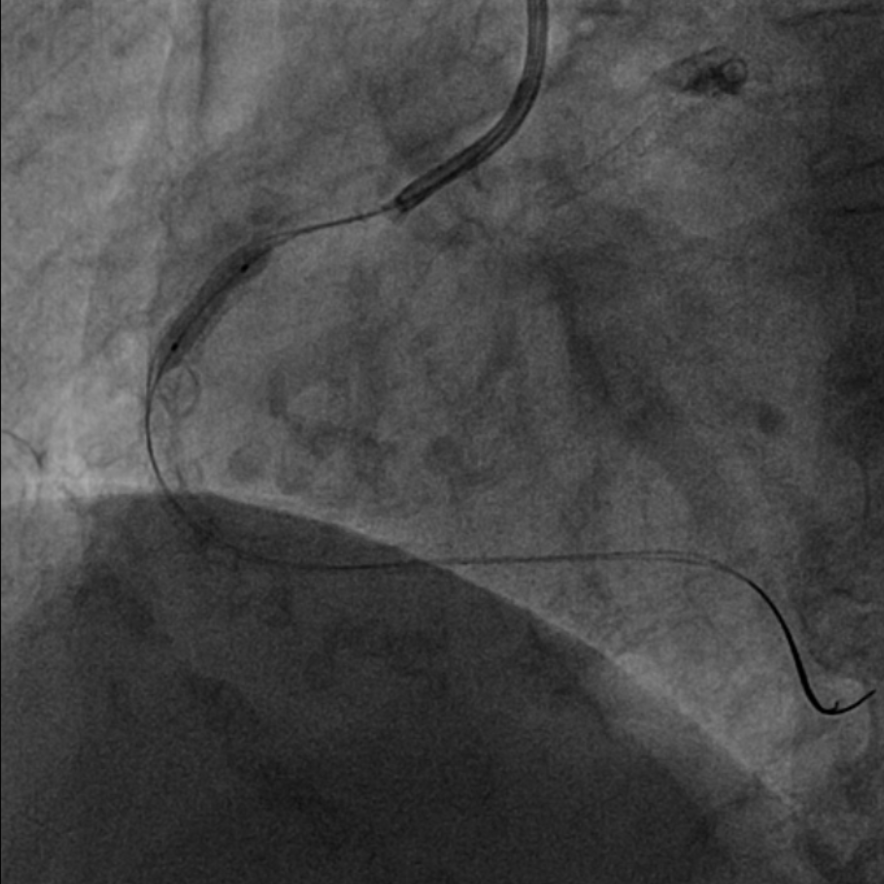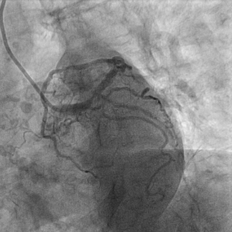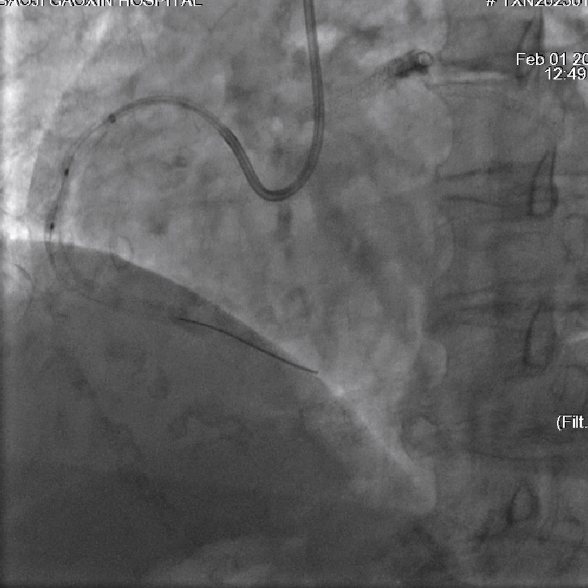 该患者为68岁女性,14年前于当地医院接受冠脉介入治疗,于左主干至前降支、回旋支及右冠状动脉共植入5枚支架,近10天来再次出现劳力性胸痛,于当地医院造影提示右冠中段支架及左主干支架内再狭窄,回旋支支架内闭塞,由于家属拒绝行CABG治疗,当地医院尝试处理右冠支架再狭窄时球囊未能扩张,为求进一步诊治遂转入西安交通大学第一附属医院心血管内科进一步诊治。