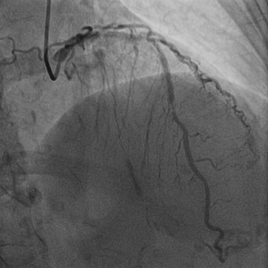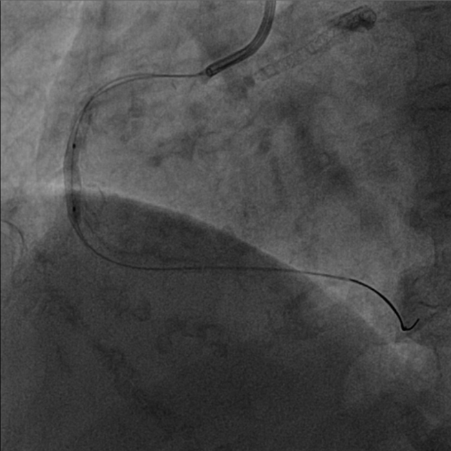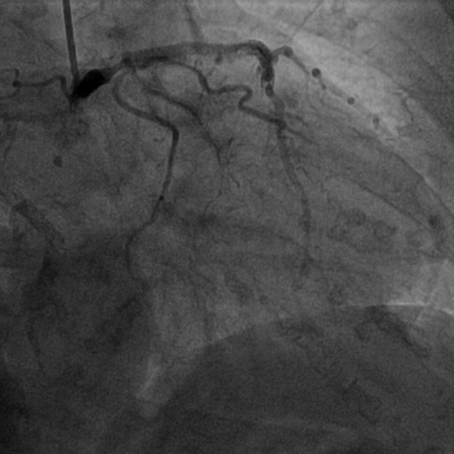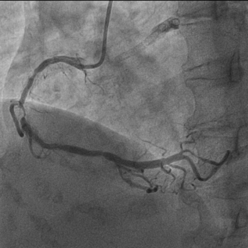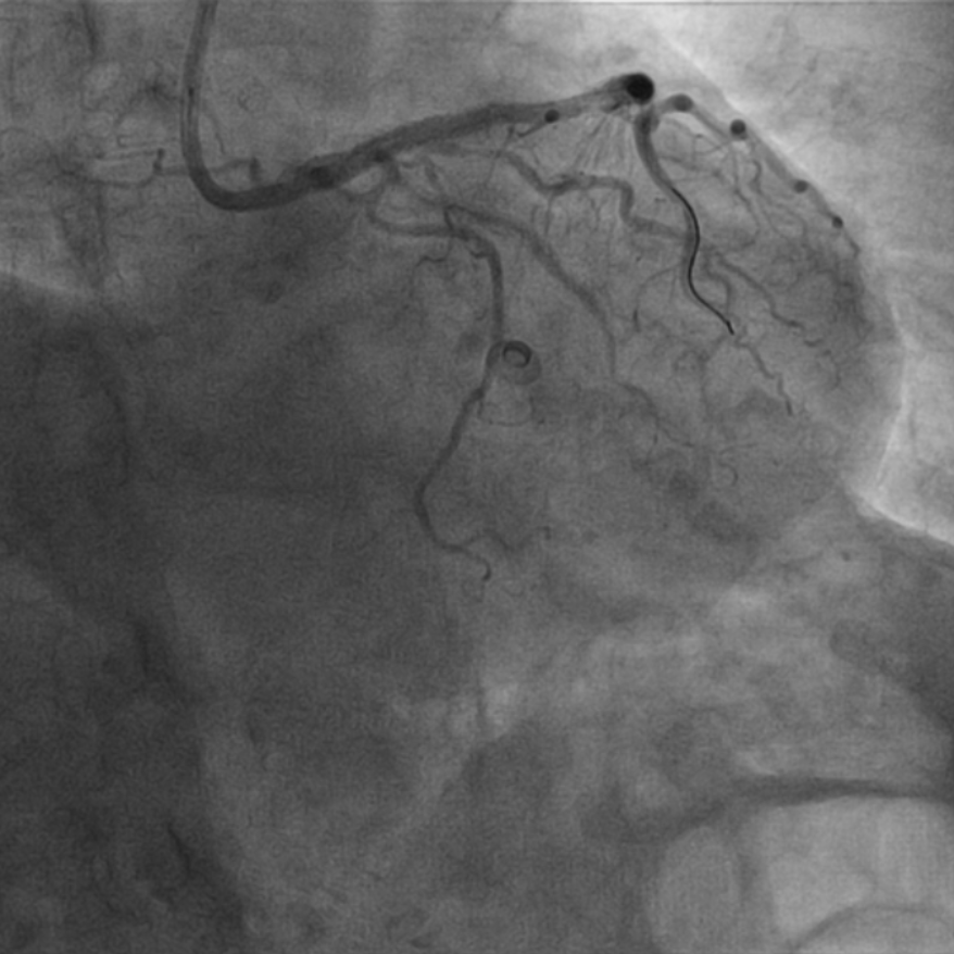 该患者为68岁女性,14年前于当地医院接受冠脉介入治疗,于左主干至前降支、回旋支及右冠状动脉共植入5枚支架,近10天来再次出现劳力性胸痛,于当地医院造影提示右冠中段支架及左主干支架内再狭窄,回旋支支架内闭塞,由于家属拒绝行CABG治疗,当地医院尝试处理右冠支架再狭窄时球囊未能扩张,为求进一步诊治遂转入西安交通大学第一附属医院心血管内科进一步诊治。