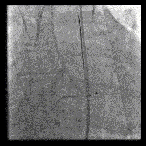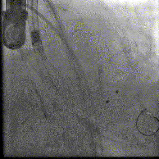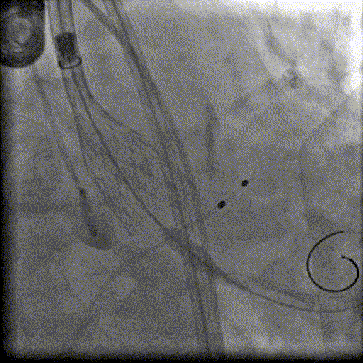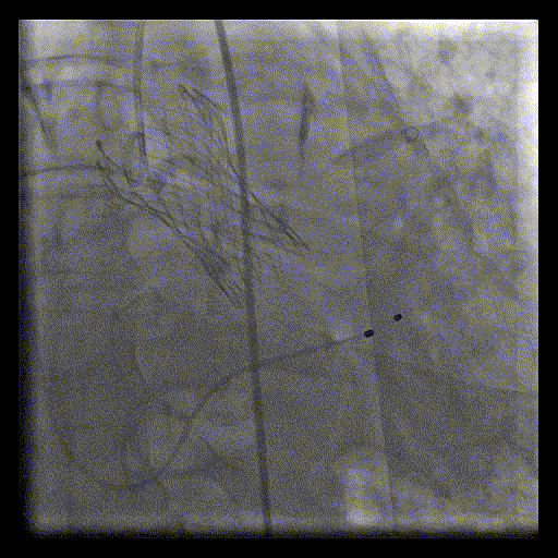 植入后造影微量反流,超声提示瓣膜工作良好,最大跨瓣流速1.7m/s,平均跨瓣压差几乎为0,造影检查主入路,血管未见损伤,手术顺利结束。