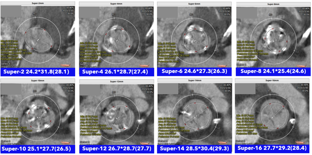 环上钙化分布较为均匀,限制区高度4-12mm,开口最受限处位于环上8mm,预估瓣膜锚定良好。