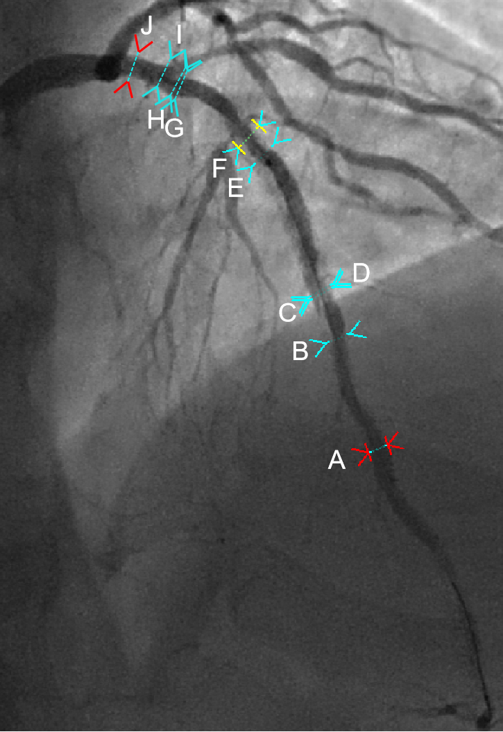 图中H-I段:2.3mm:D1的2.25*15mm支架在开口部位伸入LAD的支架梁