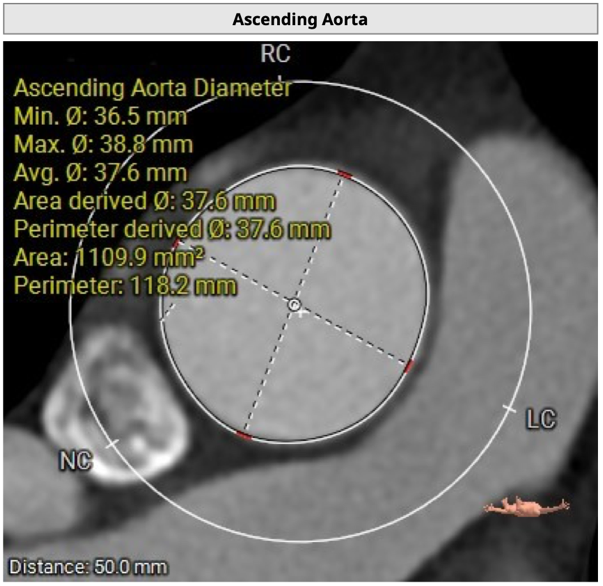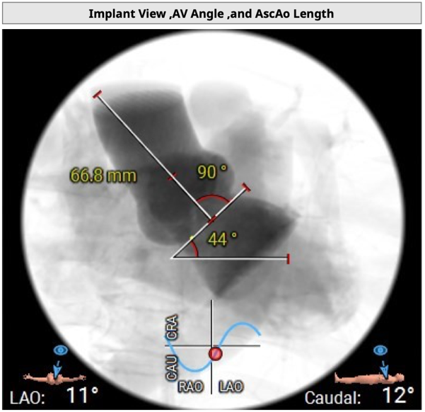 升主动脉长度:66.8mm,瓣环水平夹角44度