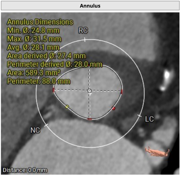 主动脉瓣瓣环周长:88.0mm,周长径:28.0mm