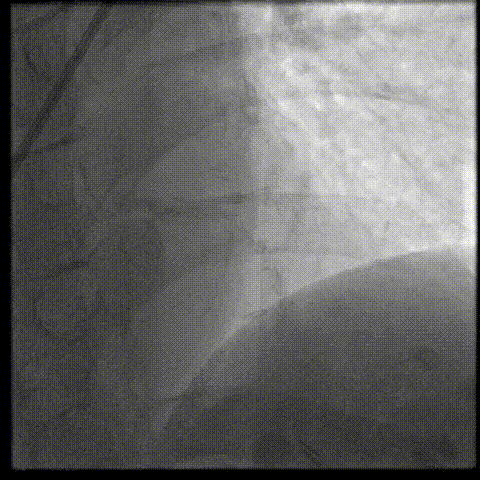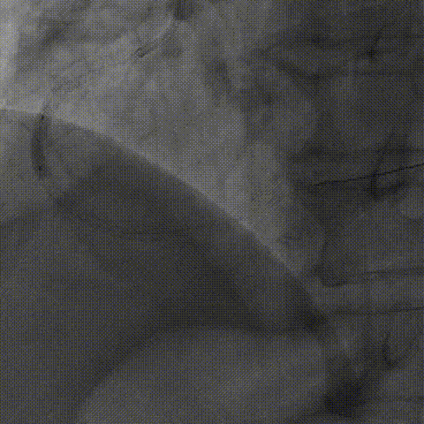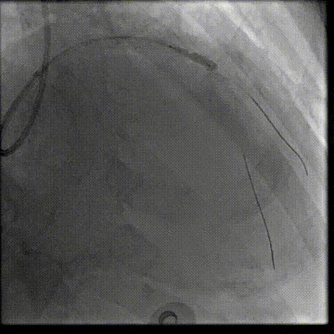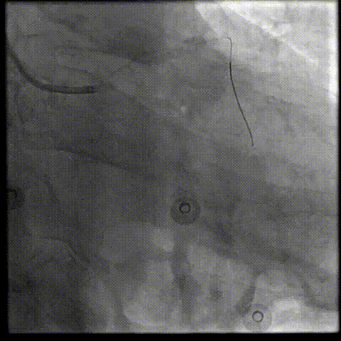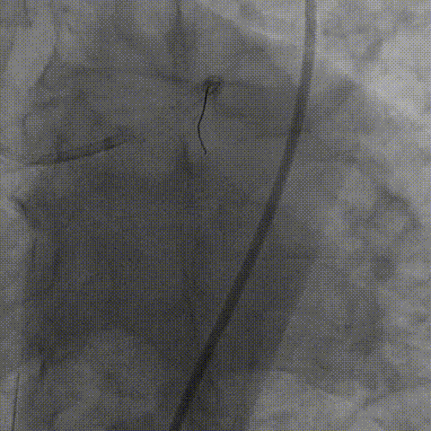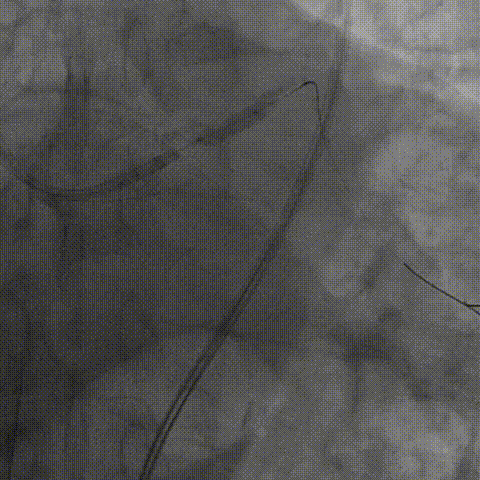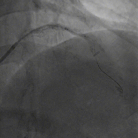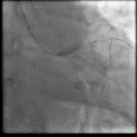 为充分打开钙化,并获得更大管腔面积,故选用shockwave 3.5*12mm对球囊膨胀不理想处进行钙化断裂,经过8个周期治疗后,钙化环充分断裂。随后顺利植入支架,术后效果十分满意;