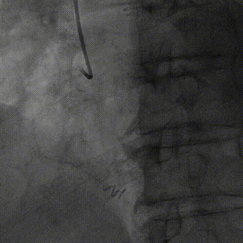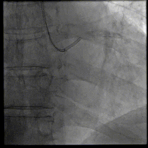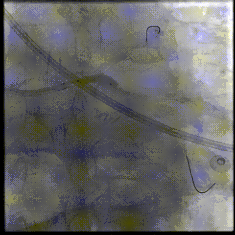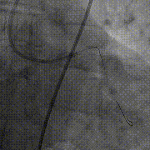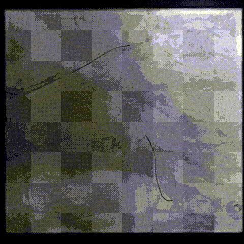 将EBU 3.0指引导管坐窦底,Sion导丝飘入