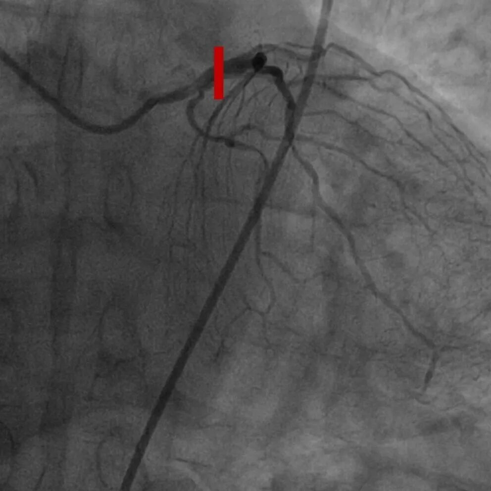 74岁老年男性,反复胸痛1月,于当地医院就诊,诊断不稳定心绞痛,冠脉造影提示,左主干-前降支重度钙化合并重度狭窄,球囊无法扩张,至我院行进一步处理。