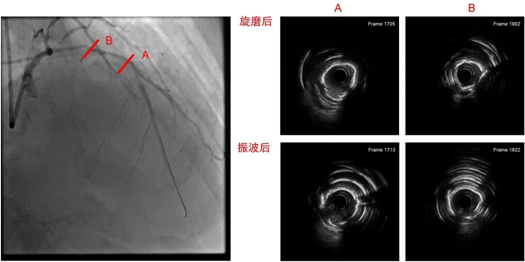 病变部位旋磨后,振波后超声对比