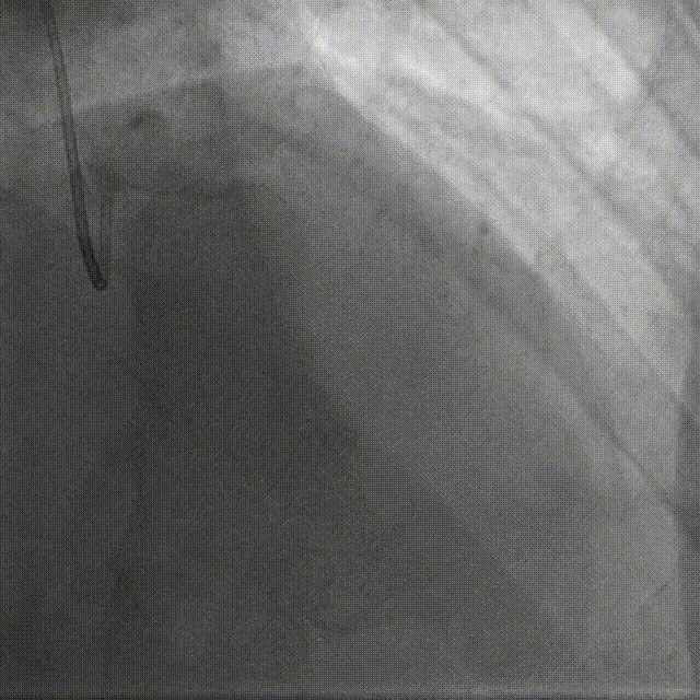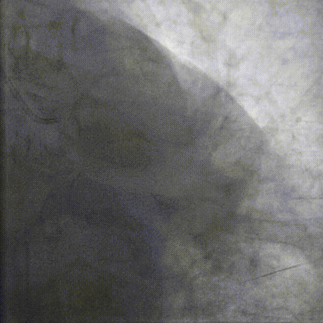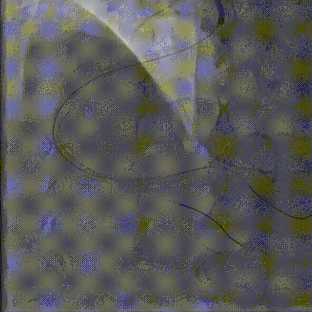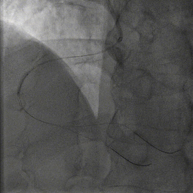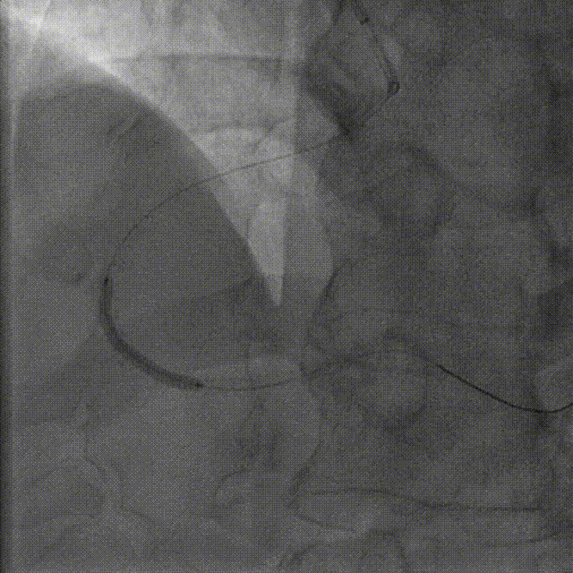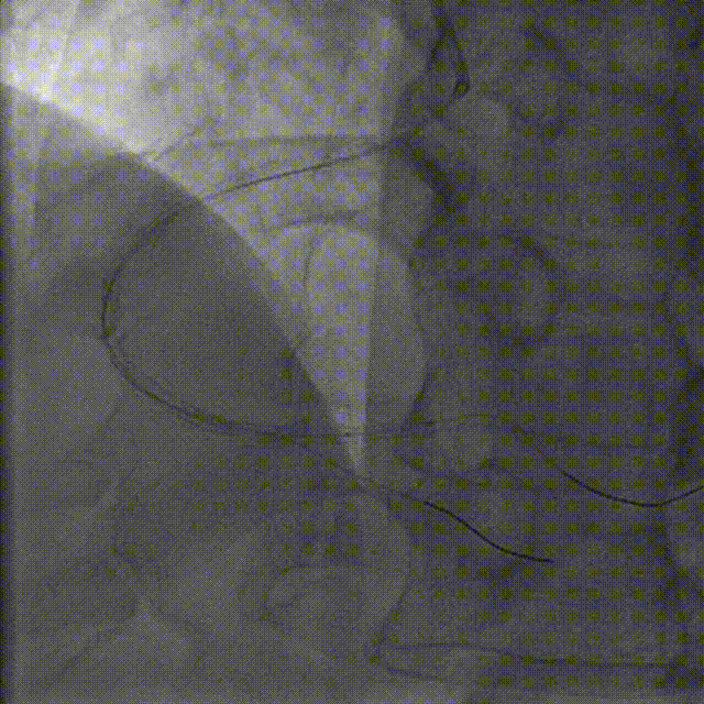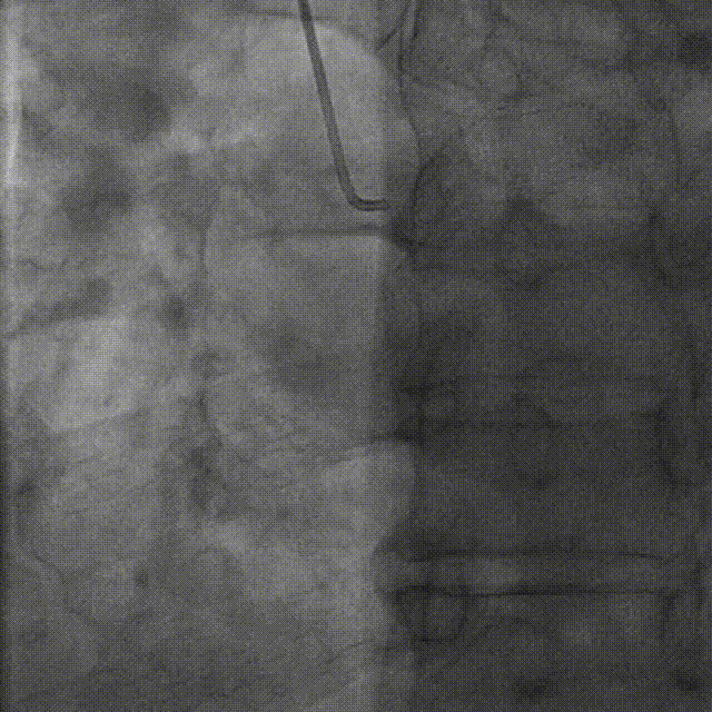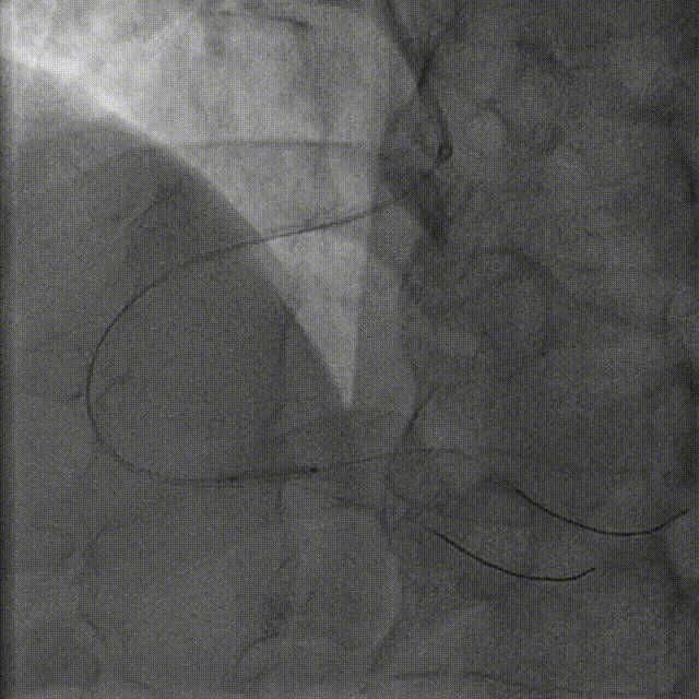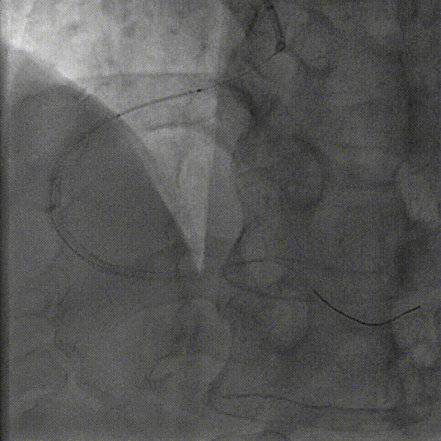 右冠脉开口变异,冠脉管壁钙化,且病变弥漫,术中选择强支撑指引导管不容易到位,容易损伤冠脉开口,同时延长手术时间;