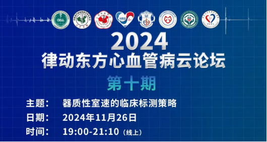 2024年11月26日,由同济大学附属东方医院杨兵教授担任大会主席,武汉大学人民医院黄鹤教授和复旦大学附属中山医院聂振宁教授担任联合主席的“2024律动东方心血管病云论坛”第十期于云端圆满举办。来自同济大学附属东方医院的余金波教授和张旭敏教授担任主持嘉宾。