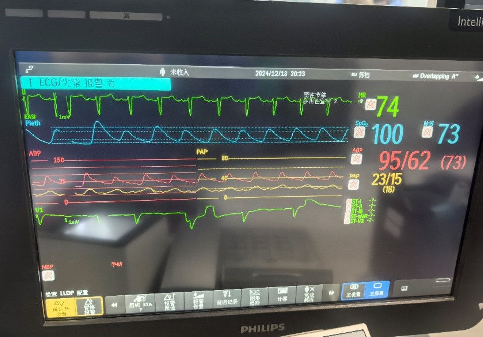 患者为69岁老年男性,10余年前无明显诱因下出现活动后胸闷气促,无胸痛,无心慌心悸,无头晕黑朦,无恶心呕吐等不适,患者多次至当地医院就诊,诊断为"慢性心衰、重度二尖瓣关闭不全",予药物强心、利尿、扩血管等支持治疗,治疗后患者症状改善。后患者活动耐量逐渐下降,现少量活动即可诱发胸闷。患者20天前上述症状再次加重,且出现夜间无法平卧,伴气喘气促,伴下肢间歇性水肿,无胸痛,无头晕黑朦,无恶心呕吐等不适,遂至我院就诊,拟"心脏瓣膜病、慢性阻塞性肺病、心功能IV级(NYHA分级)"收治入院。自病以来,神清,精神软,胃纳差,睡眠较差,夜间憋喘,大小便均偏少,体重无明显减轻。