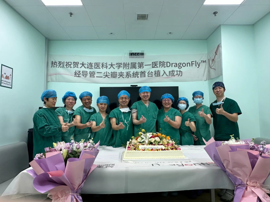 在大连医科大学附属第一医院夏云龙院长、心力衰竭中心主任姜一农教授的支持下,郭然教授带领结构性心脏病团队在麻醉科、心脏超声科、导管室等多学科团队的默契配合下,成功应用国产创新利器DragonFly™经导管二尖瓣夹系统,为一名高危且罹患重度二尖瓣反流患者实施经导管二尖瓣缘对缘修复术(TEER)。以微创、精准的方式,有效攻克了患者长期面临的复杂心脏瓣膜问题,展现了团队在高端结构心介入治疗领域的卓越实力。