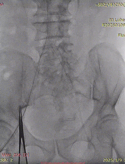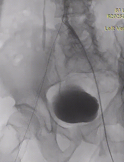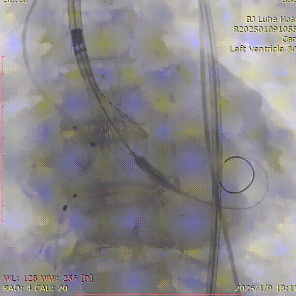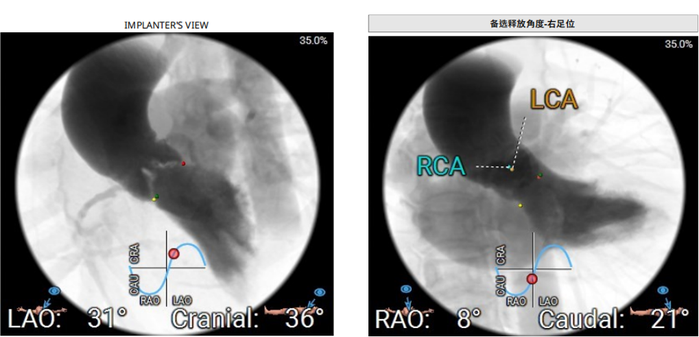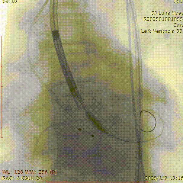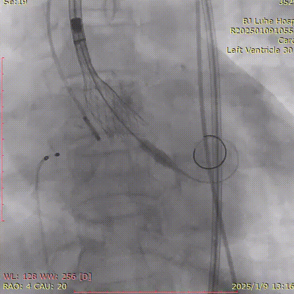最终植入深度约10mm,少+瓣周漏,造影检查股动脉入路,血管未见损伤,手术顺利结束。