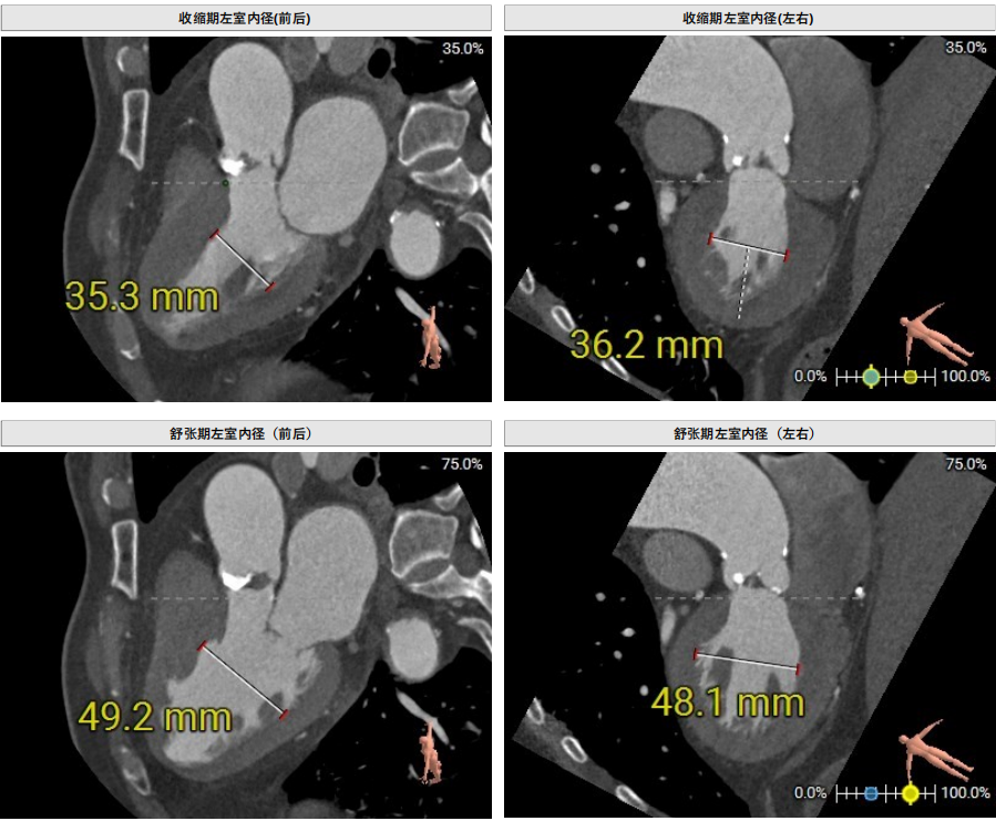 CT评估-左室测量:收缩期及舒张期左室内径可,舒张期瓣叶关闭良好