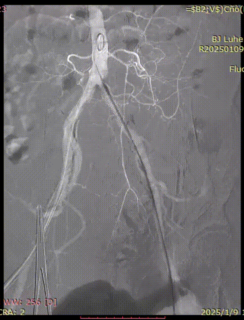 左侧髂总动脉重度狭窄支架置入术后1年;1月前因冠心病于LM-LAD置入支架1枚;高血压病史10年。