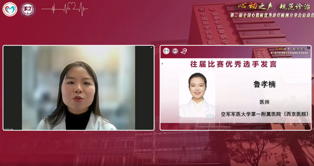 会议的第三个环节则邀请各区域专家组组长发言。华东专家组南昌大学第二附属医院洪葵教授、华南专家组广东省人民医院黎励文教授、西部专家组重庆医科大学附属第一医院罗素新教授、华中专家组华中科技大学同济医学院附属协和医院袁璟教授、东北专家组大连医科大学附属第一医院刘金秋教授和华北专家组首都医科大学附属北京安贞医院杜昕教授分别致辞,表达了对比赛重要意义的认可,并各自分享了本区域的工作开展思路,彰显了全国专家对此次比赛的高度关注与重视。此外,启动会邀请第一届心肌病规范诊治优秀病例青年医师演讲比赛一等奖选手、空军军医大学第一附属医院(西京医院)鲁孝楠医师分享参赛心得,为本届参赛选手们提供了宝贵的经验。