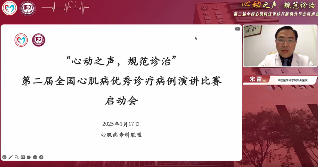 启动会由国家心血管病中心心肌病专科联盟专家工作组组长、中国医学科学院阜外医院宋雷教授主持。全国各地区域专家组专家齐聚云端,共同见证这一重要时刻。宋雷教授在致辞中表示,此次大赛是在2024年首届心肌病规范诊治优秀病例青年医师演讲比赛的基础上传承与创新,大赛规模更大、辐射范围更广、影响力更强,旨在为全国心肌病领域的同仁们提供更优质的展示和交流平台,助力学科发展。随后,宋雷教授从心肌病疾病背景、心肌病管理能力以及我国心肌病整体管理现状等方面进行深入剖析,并强调希望通过病例比赛这一形式,向全国同道普及诊疗知识、规范理念、提升水平。