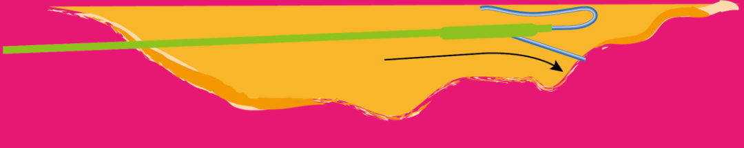 当夹层管腔扩大时,改变导丝头端弯曲的形状,例如使导丝头端弯度大于常规弯度,可能有助于选择真腔。然而,这些操作并不能保证成功将导丝送入真腔。尽管做出了种种努力,但术者有时仍无法将导丝推送到真腔中。与推送到假腔时相比,当术者将导丝推送到真腔时,会感受到更小的阻力。然而,由于术者往往存在乐观偏见,可能会忽略假腔中的阻力,并继续将导丝推送到假腔远端,从而扩大假腔。当术者在操作导丝时感受到轻微阻力时,有必要仔细判断导丝是否确实位于真腔内。重要的是不要注射造影剂,而应使用IVUS来确认导丝是否位于真腔内。