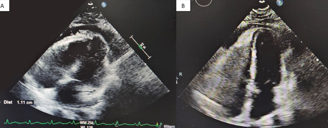 甲型流感相关的心包心肌炎可能导致心源性休克、心包填塞或死亡。在一项文献综述中,在1951年至2021年期间,75例11至49岁患有甲型/乙型流感心包心肌炎或孤立性心包炎的患者中,58例最初表现为心动过速、低血压、胸痛和呼吸困难。文献综述还显示,在63.8%的心包心肌炎病例中,患者出现了心源性休克,伴或不伴心包填塞。虽然本例患者血压升高且缺乏典型胸痛症状,但她存在心动过速且呼吸困难,是不典型症状。此外,本例患者出现了心包积液,但尚未发展为心包填塞或心源性休克,可能是因为患者在症状恶化前及时返回急诊科就诊了。