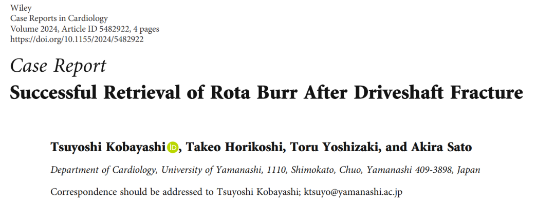 旋磨头驱动轴断裂是冠状动脉旋磨术中极其罕见但严重的并发症,可能导致心肌缺血、血管损伤、异物残留甚至需要急诊外科手术。《Case Reports in Cardiology》刊载了一例“Successful Retrieval of Rota Burr After Driveshaft Fracture”,讲述了旋磨头驱动轴断裂并发症的处置过程。