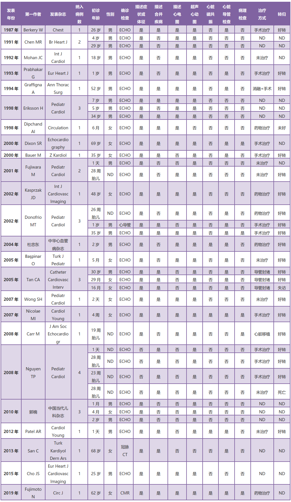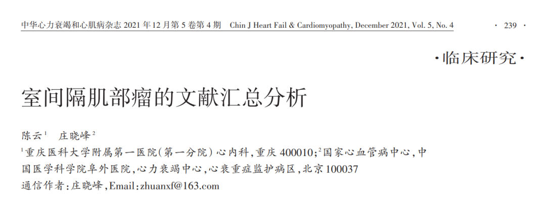 2021年发表在《中华心力衰竭和心肌病杂志》一篇“室间隔肌部瘤的文献汇总分析”中提到,从国内外学术论文数据库检索从建库至2020年12月发表的文章,共检索出24篇描述MuVSA的文章,包括病例报告22篇和综述2篇,最终37例符合标准的MuVSA患者纳入分析。