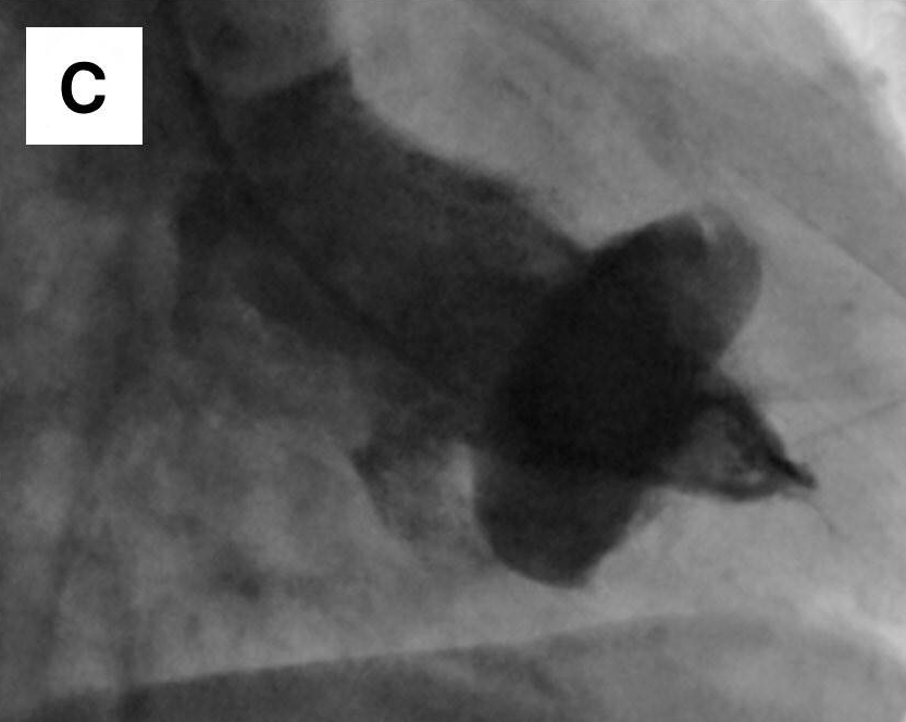 患者女性,69岁,因体检心电图发现T波改变,到心脏科就诊。患者既往无心脏相关病史及心血管危险因素。超声心动图检查发现室间隔肌部瘤样膨出,未发现左向右分流。冠状动脉造影证实冠状动脉正常。左心室造影可见室间隔肌部瘤形成。进一步行心脏CTA及MRI检查,结果显示巨大室间隔肌部瘤,直径与胸主动脉直径相当,未见血栓形成。鉴于患者无症状且无血流动力学影响,采取保守治疗策略,包括生活方式干预、定期心脏监测及规律随访。虽考虑预防性抗凝治疗可能会获益,但由于无血栓形成、血流动力学稳定且缺乏其他危险因素,最终未予实施。不抗凝虽可能增加血栓形成风险,但瘤体内的血流状态可能减少了血栓形成机会,避免了抗栓治疗相关的出血风险。嘱患者每6个月复查超声心动图,必要时行MRI检查。随访期间患者持续无症状且无新发异常,故继续维持原监测方案。