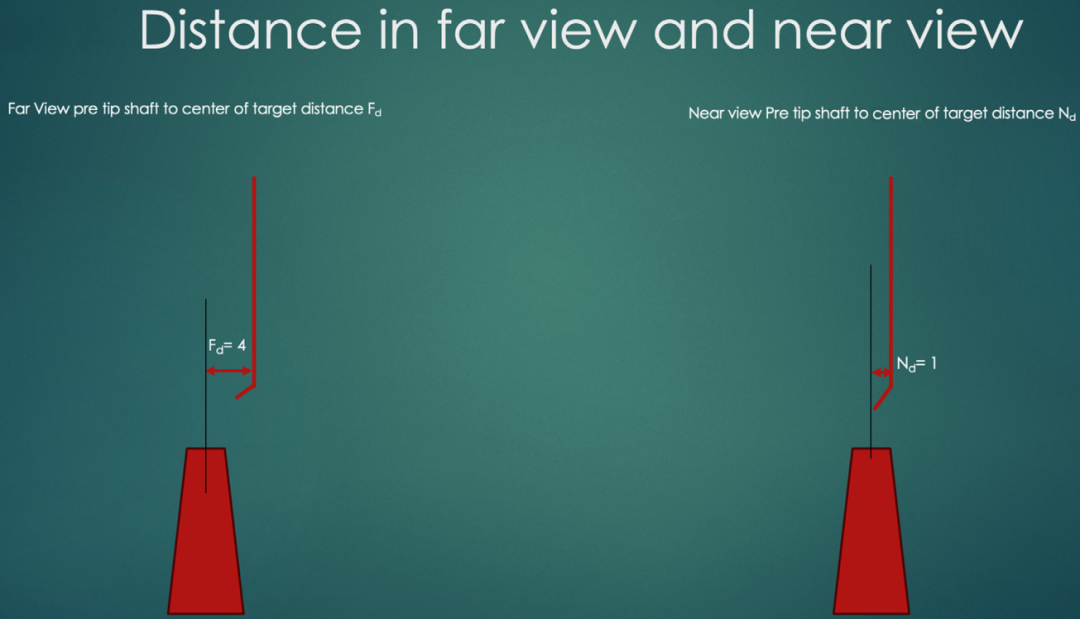 远视角距离(Fd)和近视角距离(Nd)定义为从导丝头端近侧直段到远端纤维帽中心纵向投影线的水平距离