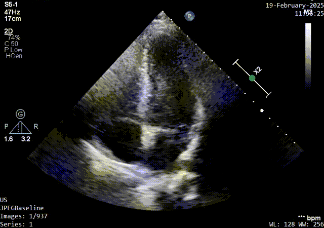 1、PFO结构:巨大型PFO,静息状态下房水平左向右分流。继发隔厚约5.7mm;原发隔厚约1.2mm;未见明确下腔静脉瓣及希阿里网回声。