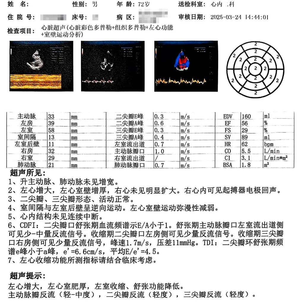 72岁的李先生(化名)因肾结石入住我院泌尿外科,却在术前常规检查中发现心脏扩大、射血分数显著降低。进一步追问病史发现,患者近3年活动耐力呈进行性下降,步行百米即出现气促,夜间偶有憋醒现象。泌尿外科李医生凭借高度的临床警觉性,立即邀请心内科会诊,为后续治疗赢得宝贵时机。