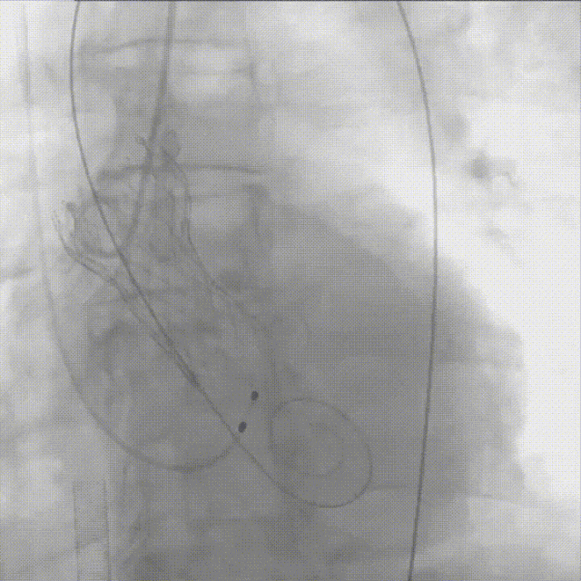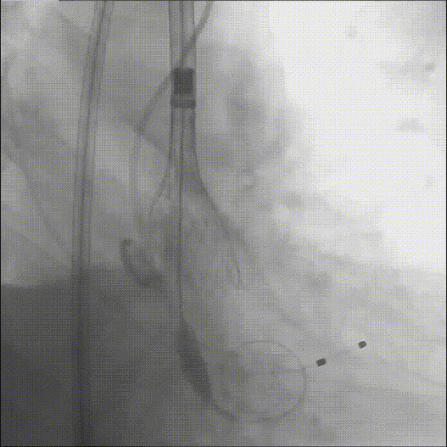 造影评估瓣膜位置满意,遂完全释放瓣膜;