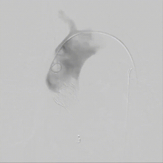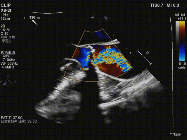 复查造影及食道超声示瓣膜位置,形态满意,瓣周漏较前明显好转,右冠血流恢复,无栓塞迹象;