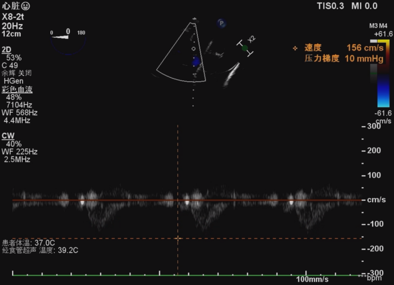 术后食道超声示: