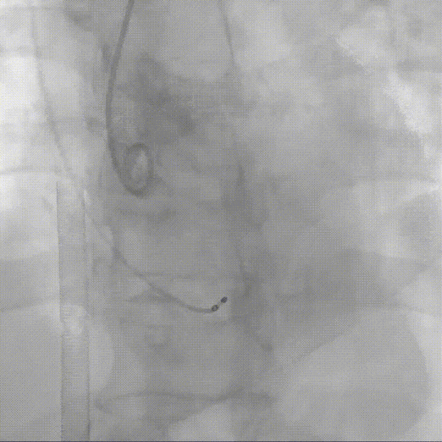 术前行右冠造影,发现存在多段管腔狭窄,血流受限,初步行球囊扩张以改善灌注,同时评估支架植入可能性;