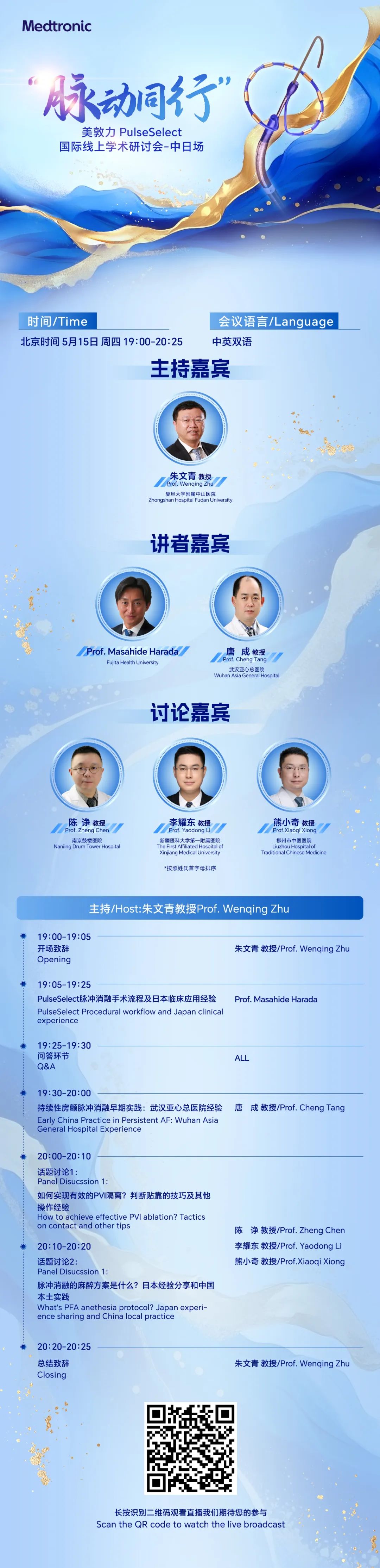 ? 5月15日19:00-20:25锁定线上直播间,与国际大咖共话医学前沿,解锁 PulseSelect™临床应用新境界!敬请期待