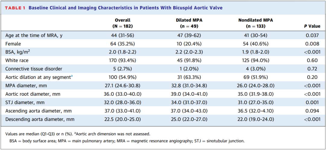 纳入标准:年龄≥18岁;经胸超声心动图或心脏磁共振成像诊断为BAV;在研究期间接受过MRA检查。既往因主动脉扩张需要接受主动脉手术的患者被纳入主动脉扩张队列。