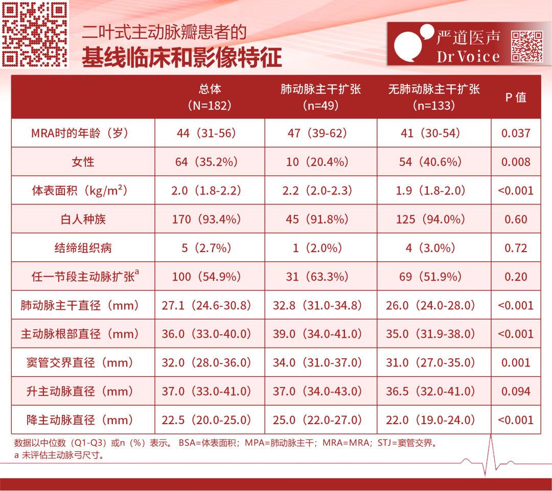 100例(54.9%)患者存在主动脉扩张(表1)。