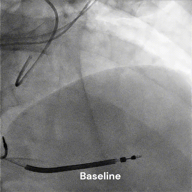 仔细查看恶性室性心律失常发生前的心电监护记录,发现存在进行性ST段压低和明显T波倒置(图3A)。这些变化在V2和V3导联最为显著,类似De Winter征。此外,查看多形性室性心动过速发作期间的心电监护记录发现,其间存在看似有序的心室活动间期,伴有冠状动脉痉挛特征性的ST段抬高模式。有一次,在12导联心电图记录期间多形性室性心动过速自行终止,随后的心房起搏显示显著ST段抬高(图2D)。这些发现被认为最可能潜在的病因是冠状动脉痉挛。后续冠状动脉造影联合小剂量乙酰胆碱试验诱发了多个冠状动脉节段的明显痉挛(图4,视频1)。冠状动脉内注射硝酸盐后,痉挛迅速缓解。