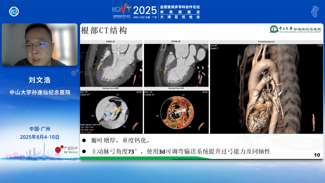此外,珠海市人民医院姜小飞教授团队,中山大学附属第一医院庄晓东教授团队,海南省人民医院王圣教授、马瑞松教授团队,上海长海医院宋智钢教授团队,南方医科大学珠江医院肖华教授、郭敬宾教授、李功辉教授团队,云南省第一人民医院庞明杰教授团队,中国科学技术大学附属第一医院徐健教授、郭飞教授团队,南昌大学第二附属医院杨人强教授团队,中山大学孙逸仙纪念医院陈祥新教授、张海峰教授、刘文浩教授团队,从术前的冠脉、脑保护等风险评估和影像分析的细致讲解,到术中入路选择、瓣膜选择、治疗策略的精准操作,开展了多个高质量,挑战性的手术演示。