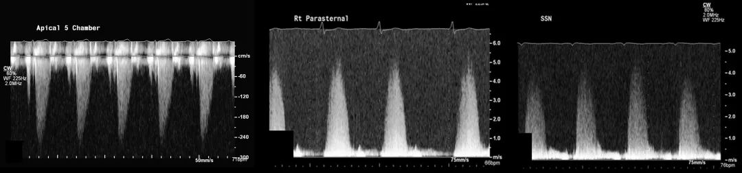 图16. 二尖瓣反流与主动脉瓣狭窄多普勒波形的比较