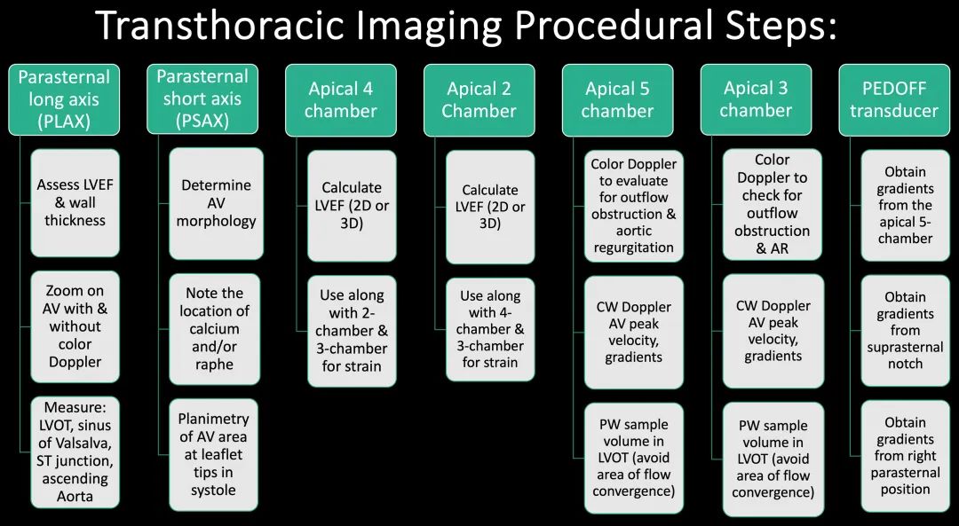 超声医生在评估主动脉瓣狭窄时可能会遇到一些挑战。一些常见成像困难包括:由于患者体型、乳房植入物或多普勒角度调整不佳导致的成像声窗欠佳。其他潜在误区包括将主动脉瓣狭窄流速误认为其他疾病状态引起的流速(如肥厚型心肌病、二尖瓣反流、主动脉瓣下隔膜等)。以下是扫描时需牢记的一些有用技巧。