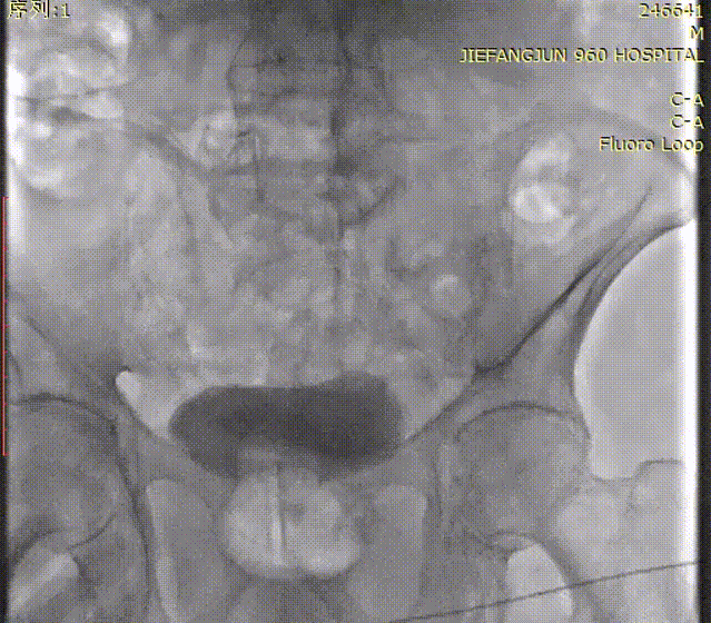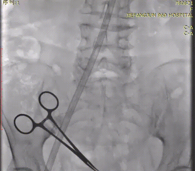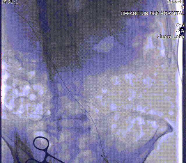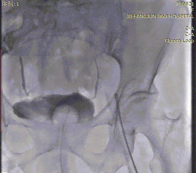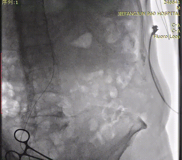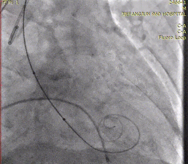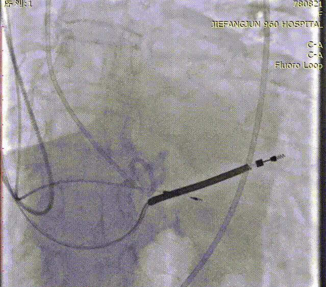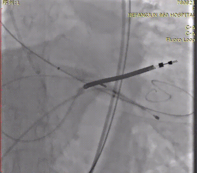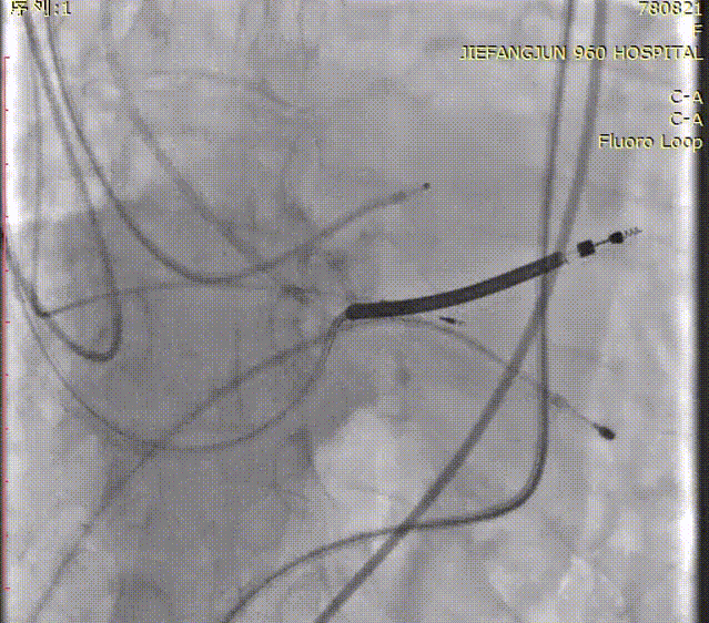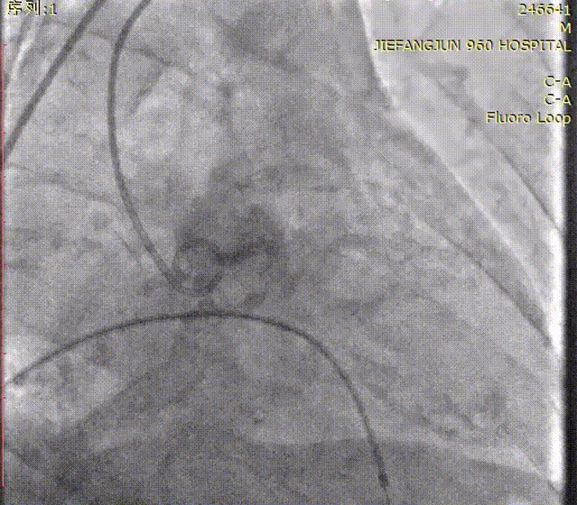 之后,右侧股动脉置入22F大鞘,猪尾导管主动脉根部造影。