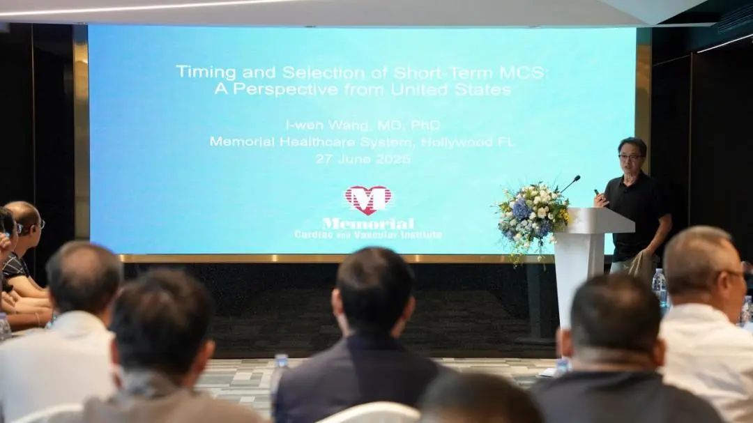 来自美国的I-Wen Wang教授分享了《短期机械循环支持(MCS)的时机与选择:美国视角》的专题报告,为与会者带来了国际前沿的临床经验与创新理念。I-Wen Wang教授系统梳理了美国短期MCS技术的发展历程,指出这类装置最初设计仅用于短期支持,但随着技术进步和设备性能提升,已展现出中长期辅助的潜力,这一演变过程为国内急性心衰救治提供了重要启示。教授特别强调,MCS的应用时机是临床决策的关键。他通过分析美国多中心数据指出,对于急性失代偿性心衰和心源性休克患者,早期介入MCS支持可显著改善预后。I-Wen Wang教授还分享了美国在设备选择上的精细化策略,包括根据患者血流动力学状态、器官功能评估及预后预期等因素,个性化匹配IABP、Impella或ECMO等不同支持方案的经验。