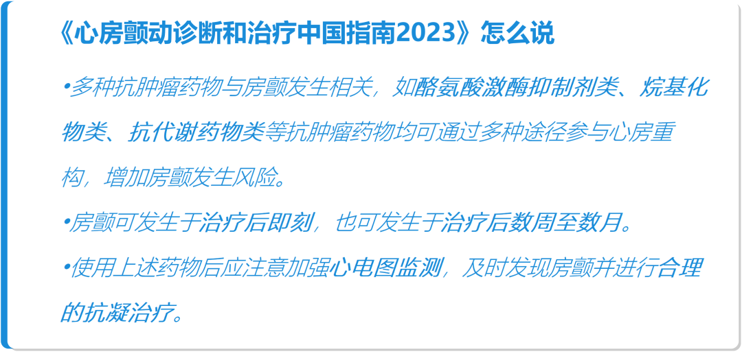 与心房基质改变、隐匿性癌症、手术或化疗或放疗相关;风险取决于癌症类型、分期及基础心血管疾病。