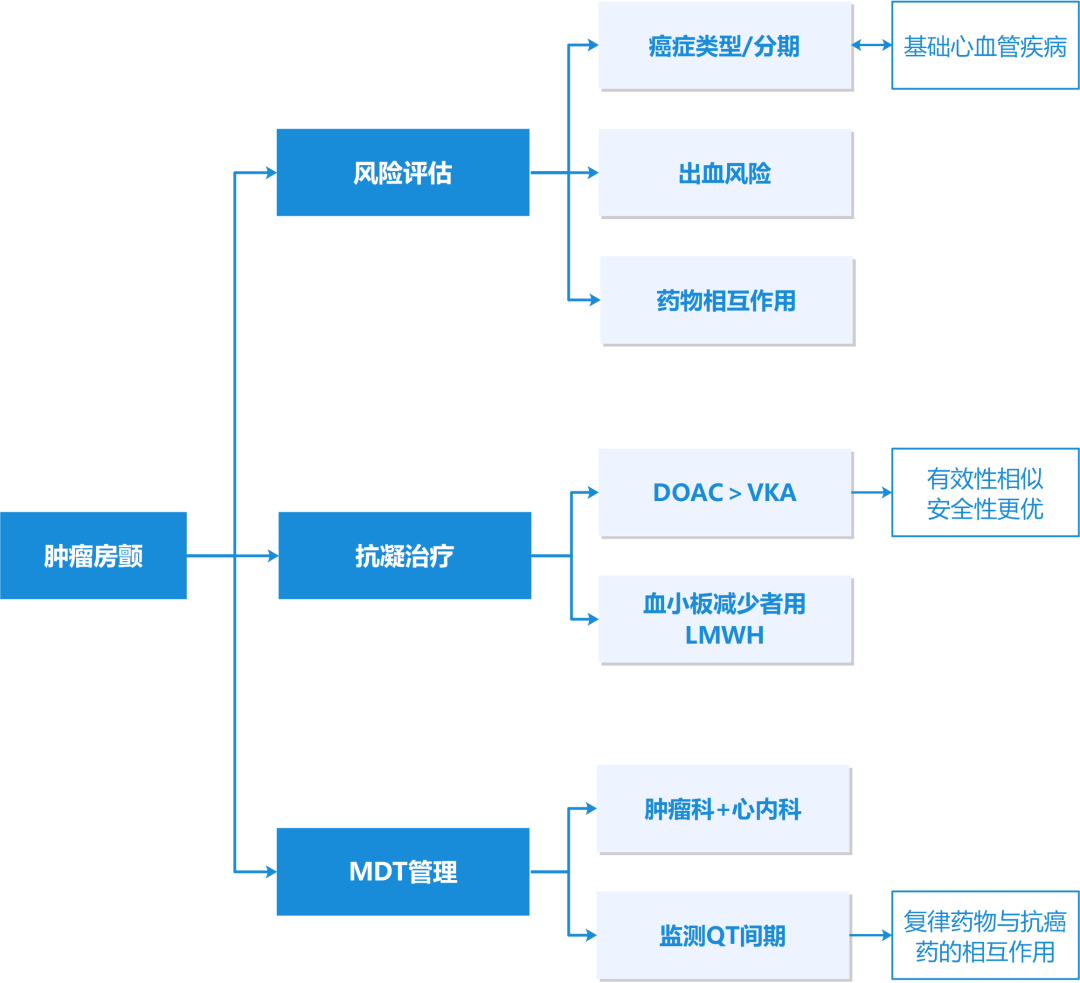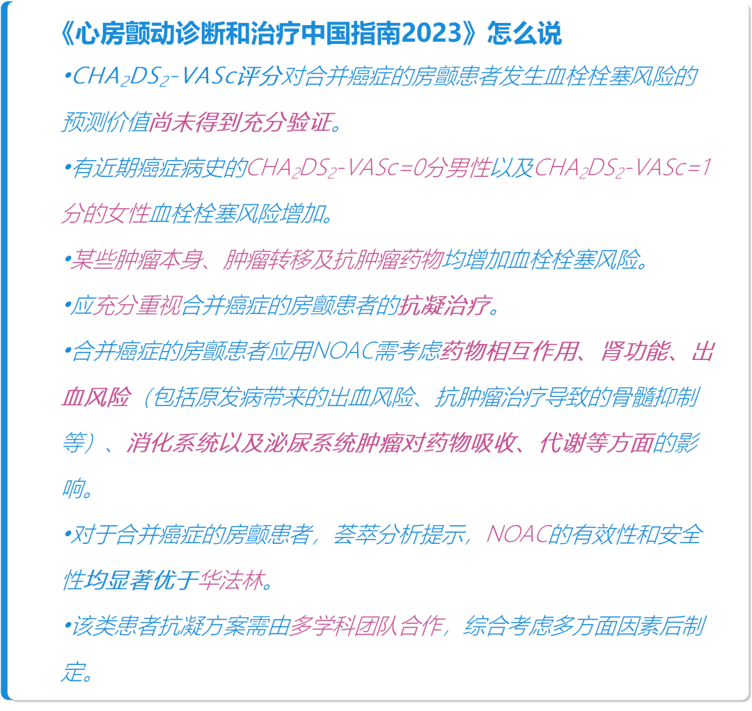 1.肿瘤患者房颤的血栓风险评分可能低估实际风险,需个体化调整抗凝强度。